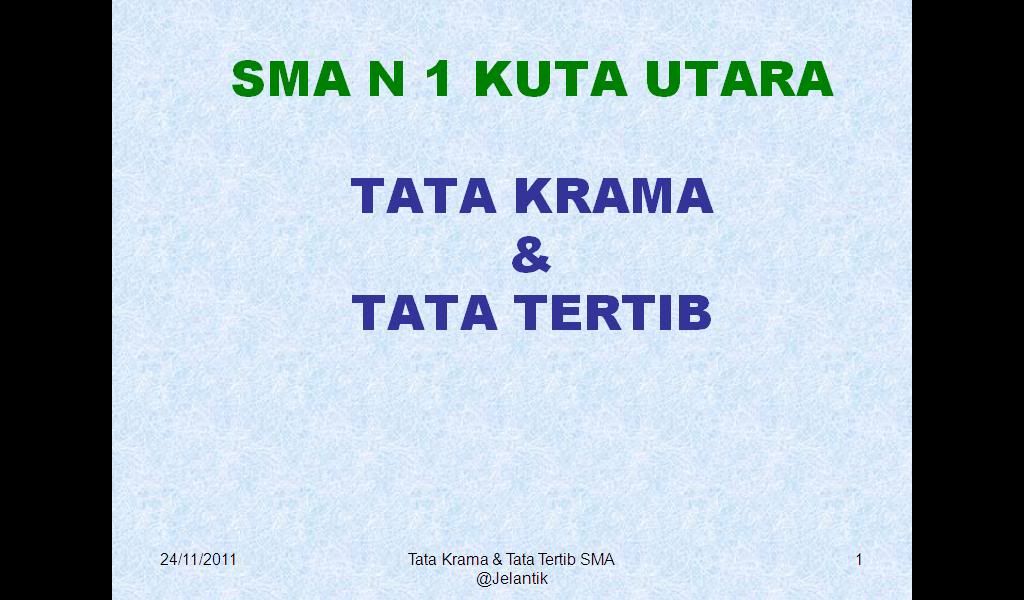 Ini tentang tata krama, bukan saja teori yg kita dapatkan, tapi sesuatu yang lain yang bermanfaat, maav ga bisa banyak basa-basi sekarang, ini data tugas presentasi yang berhasil aku minta ma guru, lumayan lengkap, keren tapi simple.